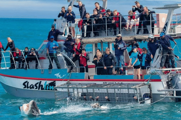 Experience the ultimate adrenaline rush with a shark cage diving adventure off Gansbaai, South Africa—the great white shark capital of the world! Enjoy a warm welcome at the Great White House, where you're treated to a continental breakfast or hot lunch while you check in and attend a detailed safety briefing. Expert guides and onboard marine biologists prepare you before your short boat trip to Shark Alley, where you might encounter whales, dolphins, penguins and more along the way.